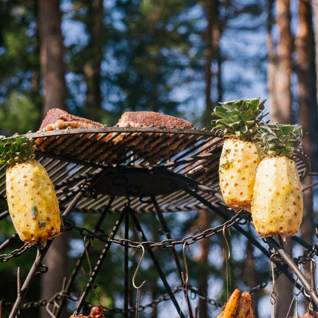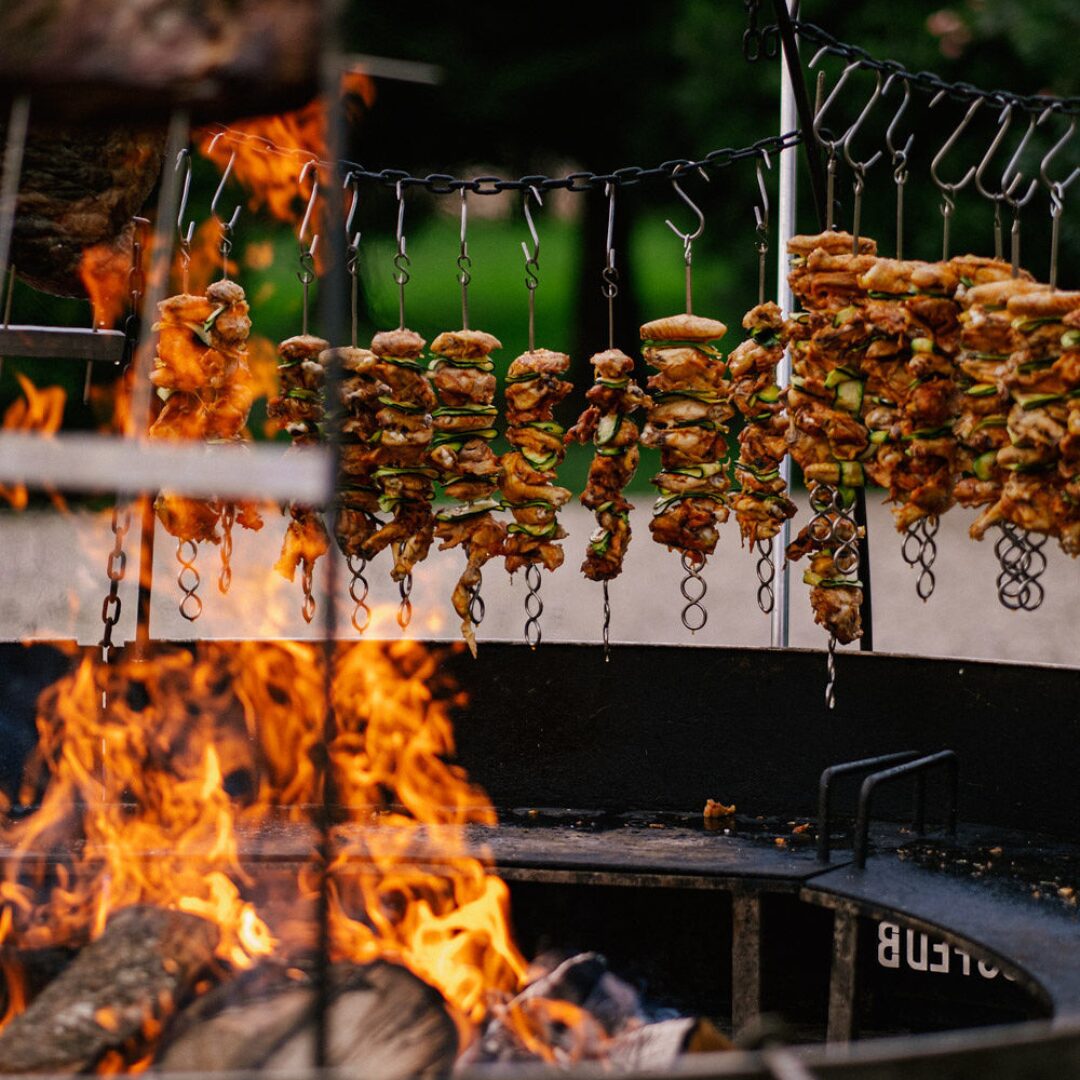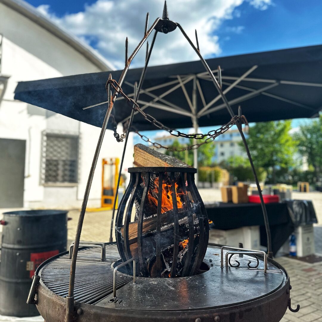Il principio è semplicissimo: sospendere il cibo sul fuoco e cuocerlo attraverso il suo calore. Noi abbiamo reso trasportabile e moderno questo concetto, realizzando una griglia in grado di cucinare per grandi folle affamate.
