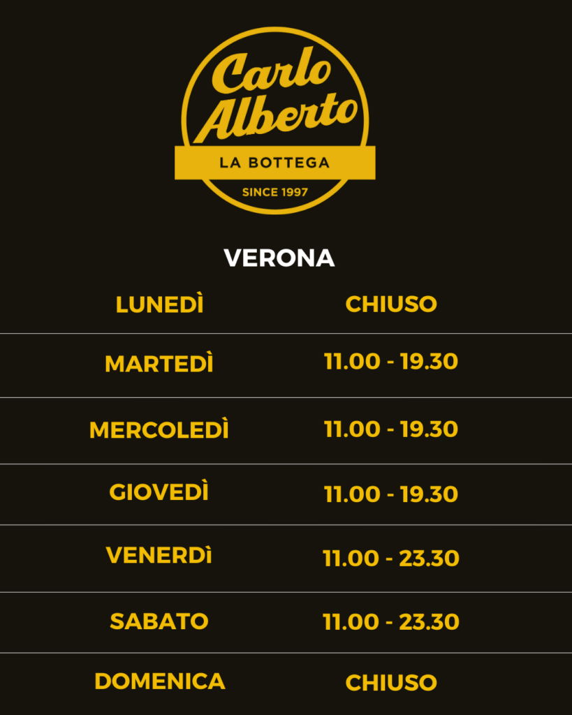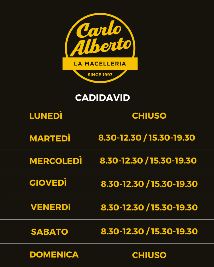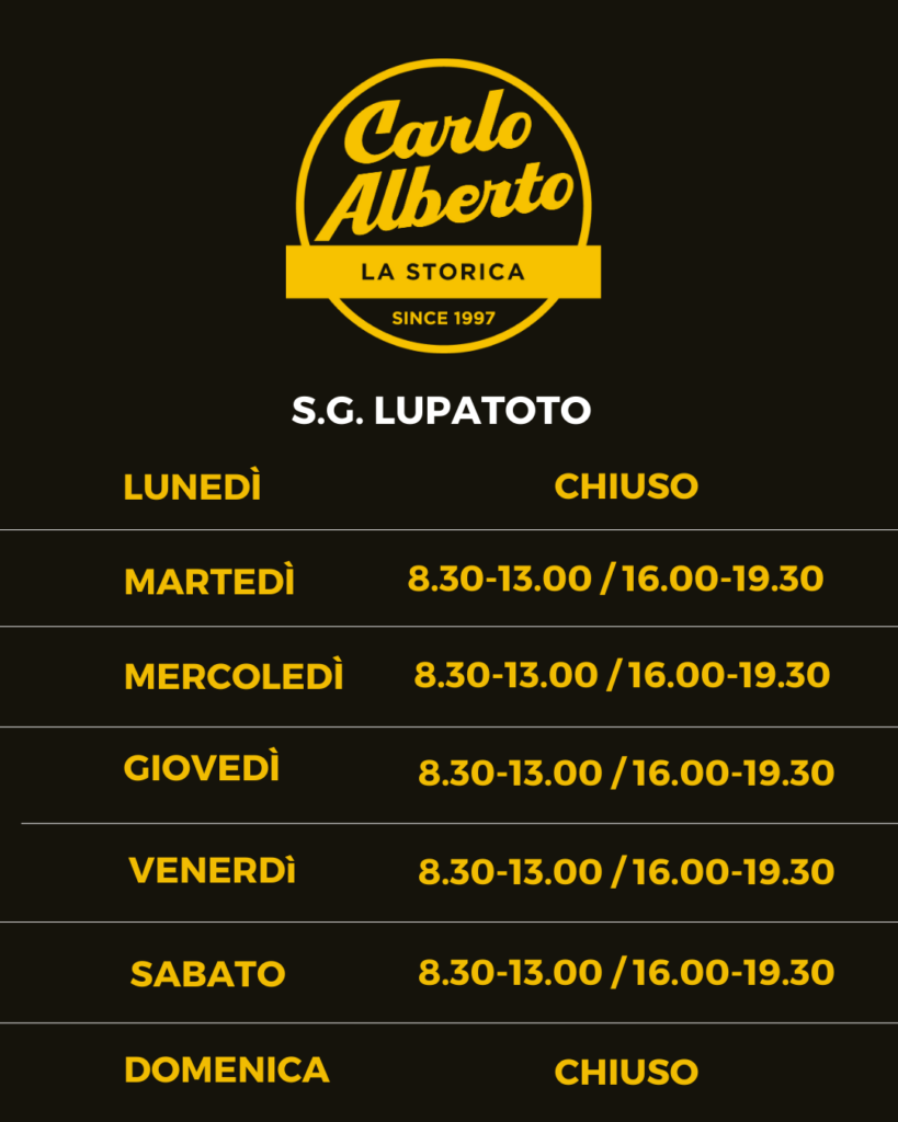 Dal martedì al sabato: 8.30-13.00 e 16.00-19.30